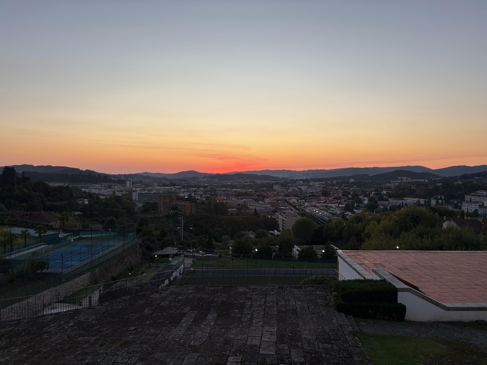 夕暮れ時には屋根付きの花崗岩のバルコニーのソファに座って、街を見下ろしながら美しい空の色を楽しみます。
