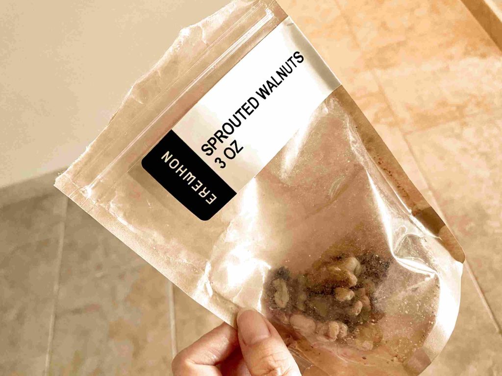 こちらはEREWHONブランドの”Sprouted Walnuts”。あまりの滋味に、ハワイへ帰る機内でほとんど食べてしまいました。お値段は7ドルで、この品質なら物価高の州ではお値打ち品かと。自社ブランドならではの良心を感じます。