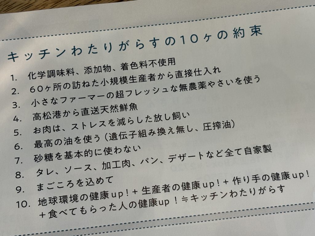 リーフレットに載っていた「キッチンわたりがらすの10ヶの約束」が世知辛い現代に信念の強さを感じます。
