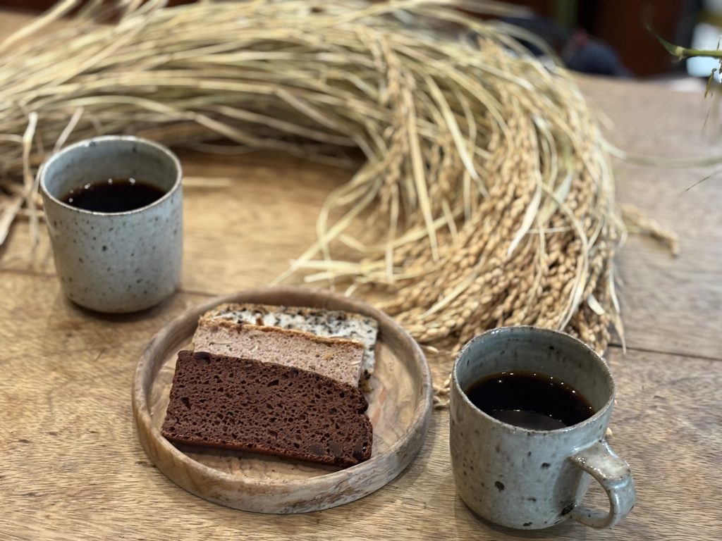 いただいたチョコレート&そば、マルチグレイン、黒ごまのパンはどれもとってもおいしく、オーガニックのデカフェのコーヒーとの相性も抜群です。チョコ&そばは、チョコレートケーキを食べたべたような満足感もあり、甘いものが欲しいけれどヘルシーに満たされたいときにピッタリ!