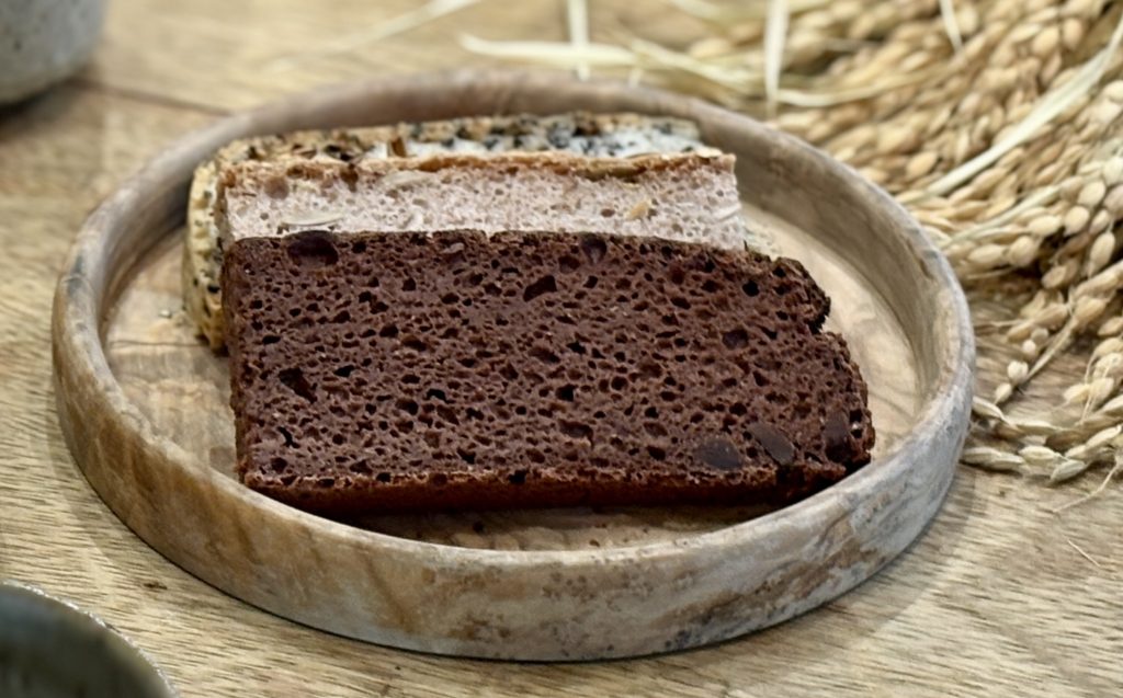 米粉だけでなく他の雑穀粉を入れることにより、滋味深く香ばしい独自のグルテンフリーのパンに仕上がります。