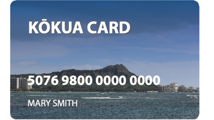 ハワイのEBTカード見本。KOKUAとはハワイ語で「助け合い」「協力」という意味です。